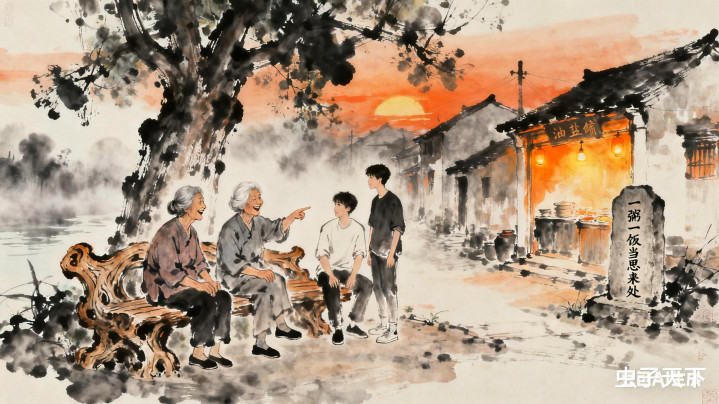那棵老槐树的根雕成了十八张长椅,每到薄暮总有老东说念主坐着唠嗑。
